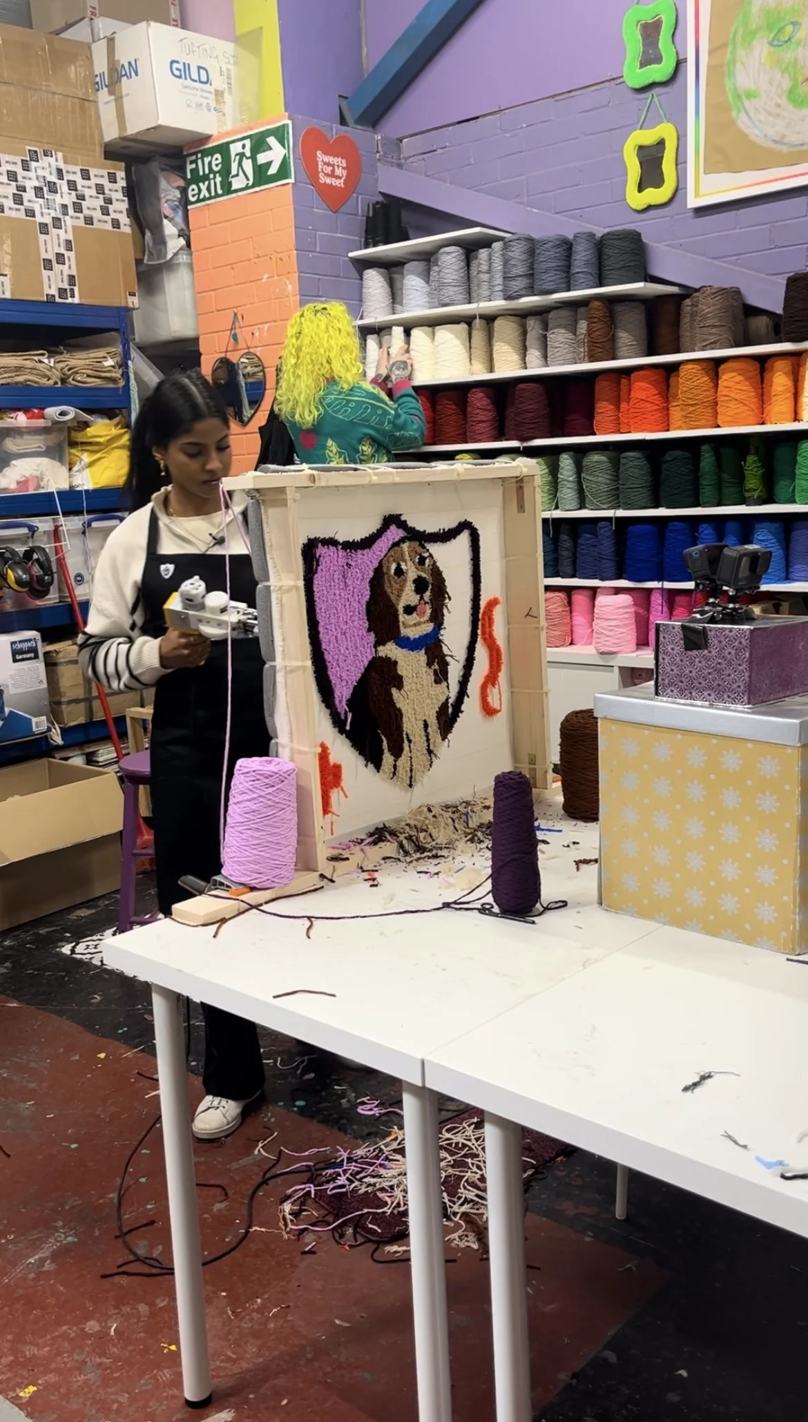 The session was designed to be fast-paced, camera-friendly, and accessible — introducing presenters to tufting fundamentals while ensuring clear visual outcomes for broadcast. We guided them through the process of designing and creating their own rugs within a structured timeframe.